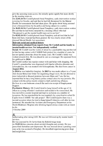Caplin from CAMHS "the safe project". Mr Cordell reports there was a