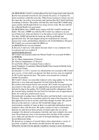 On 21.11.14 the duty AMHP made contact with Mr Cordell’s mother and