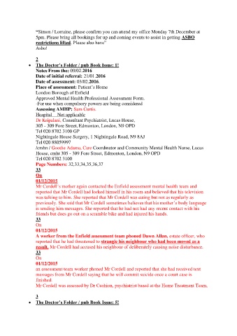 Mr Cordell’s mother again contacted the Enfield assessment mental health team and