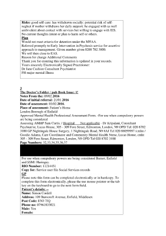 Assessing AMHP Sam Curtis. / Hospital Not applicable - Dr Kripalani, Consultant