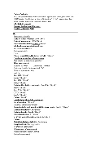 Remains informal inpatient G Detained under Sec.2: “Blank”