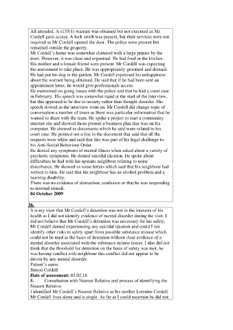 I identified Mr Cordell’s Nearest Relative as his mother Lorraine Cordell.