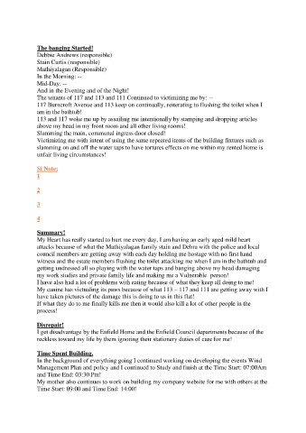 The tenants of 117 and 113 and 111 Continued to victimizing me by: --