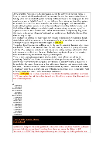 that Enfield Council is not aware of about the police and my son this is getting addressed