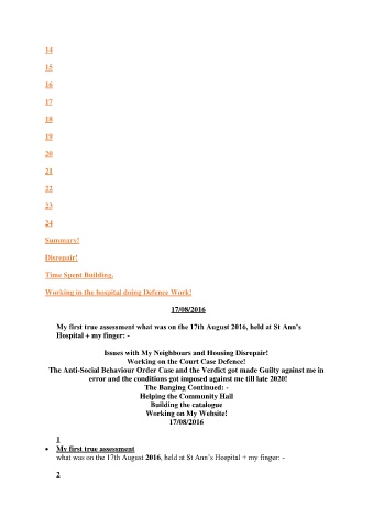what was on the 17th August 2016, held at St Ann’s Hospital + my finger: -