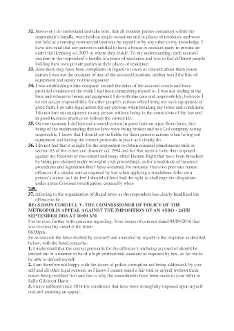 35. On one occasion I did hire out a sound system in good faith on a pro Bono basis, this