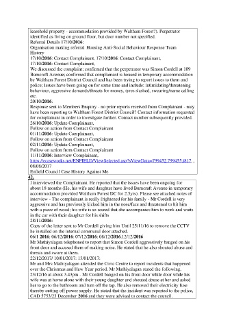 leasehold property - accommodation provided by Waltham Forest?). Perpetrator