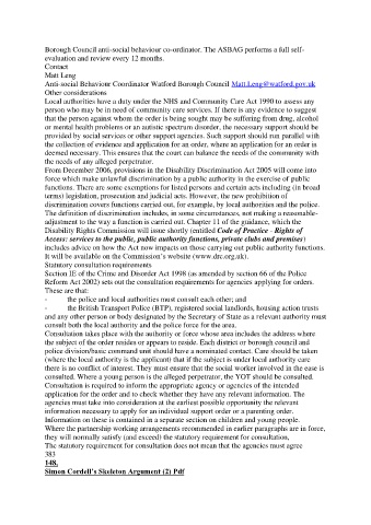 Anti-social Behaviour Coordinator Watford Borough Council Matt.Leng@watford.gov.uk
