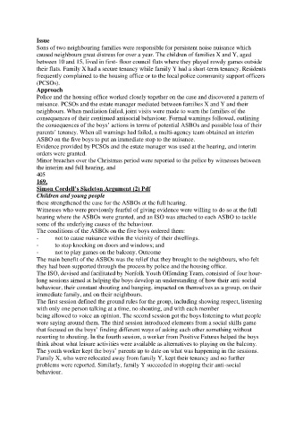nuisance. PCSOs and the estate manager mediated between families X and Y and their