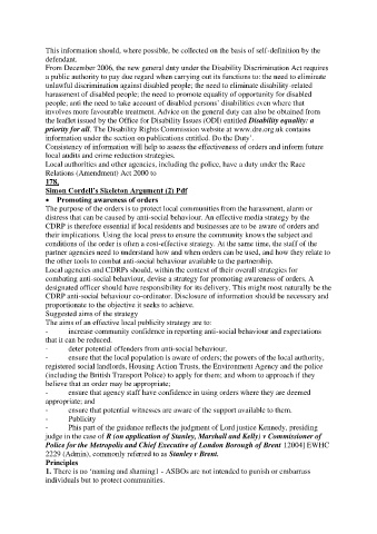 CDRP anti-social behaviour co-ordinator. Disclosure of information should be necessary and