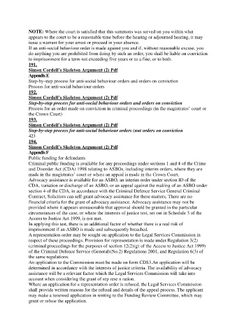 and Disorder Act (CDA) 1998 relating to ASBOs, including interim orders, where they are