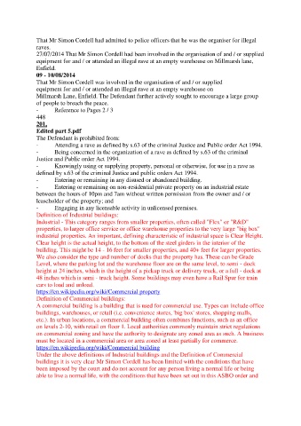 That Mr Simon Cordell had admitted to police officers that he was the organiser for illegal