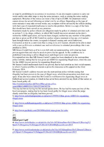 police website, stating that he was given an ASBO for organizing illegal raves, when the case