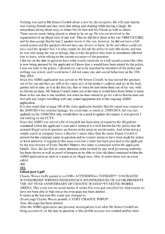 Since this ASBO application was served on Mr Simon Cordell, he has moved the speakers