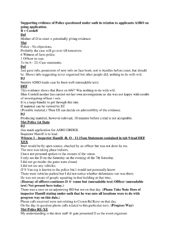 Supporting evidence of Police questioned under oath in relation to applicants ASBO on