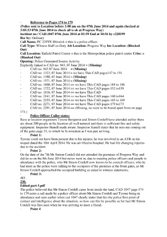 to 179 notes a call made by a police officer about Mr Simon Cordell and Tyrone being in