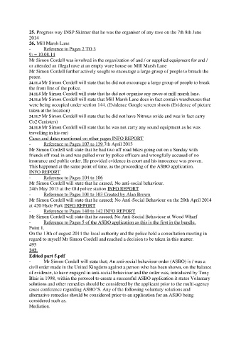 24.11.5 Mr Simon Cordell will state that he did not organise any raves at mill marsh lane.
