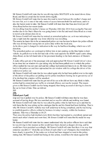 stop nor was it pulled over by police. Mr Simon Cordell will then state that he was then