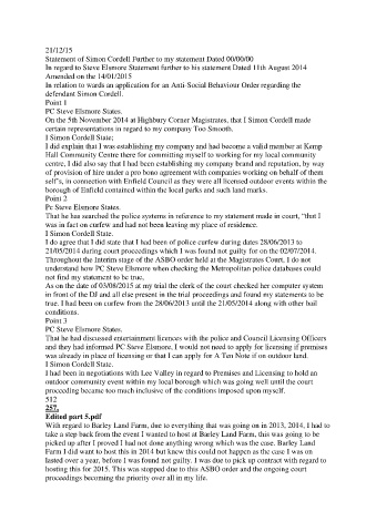 Statement of Simon Cordell Further to my statement Dated 00/00/00