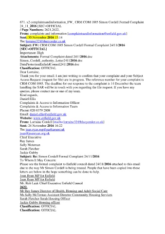 Please see the formal complaint to Enfield council dated 24/11/2016 attached to this email