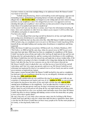 - “It is also alleged that your dogs are left by themselves all day and night barking