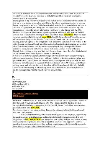 police and Enfield council in regards to Mr Simon Cordell which Mr Simon Cordell knew