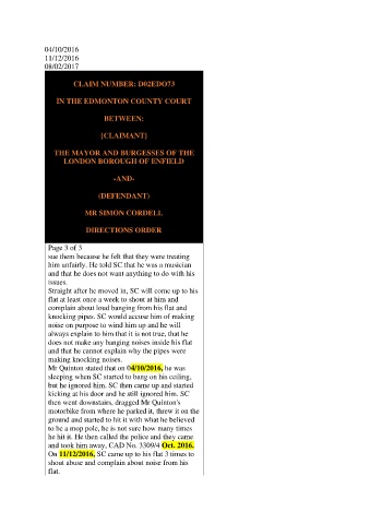 On 11/12/2016, SC came up to his flat 3 times to