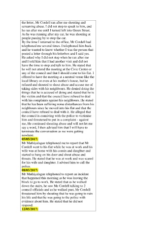 the letter, Mr Cordell ran after me shouting and