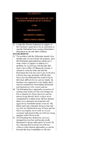 stop the Defendant from causing Intimidation,