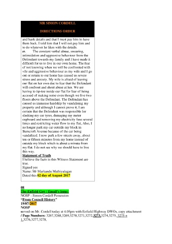 served on Mr. Cordell today at 4.05pm with Enfield Highway DWOs, copy attachment