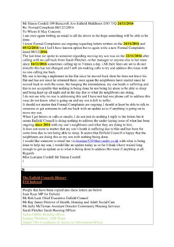 I know Formal Complaints are ongoing regarding letters written on the 24/11/2016 and