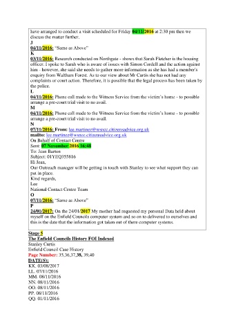 enquiry from Waltham Forest. As to our view about Mr Curtis she has not had any