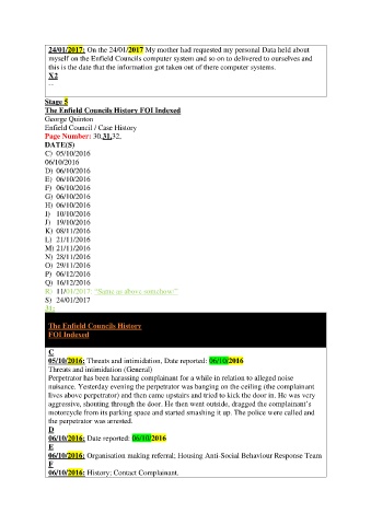 24/01/2017: On the 24/01/2017 My mother had requested my personal Data held about