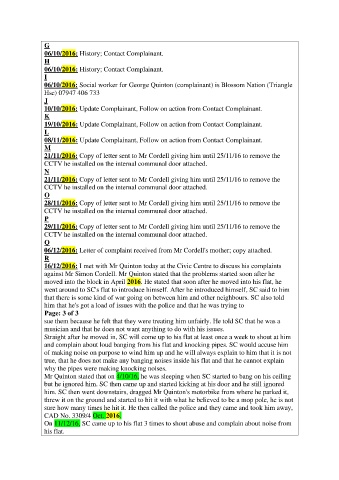On 11/12/16, SC came up to his flat 3 times to shout abuse and complain about noise from