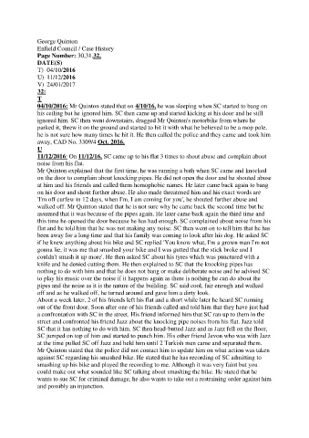 11/12/2016: On 11/12/16, SC came up to his flat 3 times to shout abuse and complain about