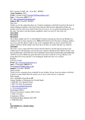 All of these emails were CC to Joan Enfield Council is leaving my Son not my Brother in a