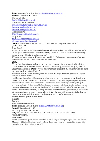 will help his heath. It does seem Enfield Council is more worried over the formal complaints