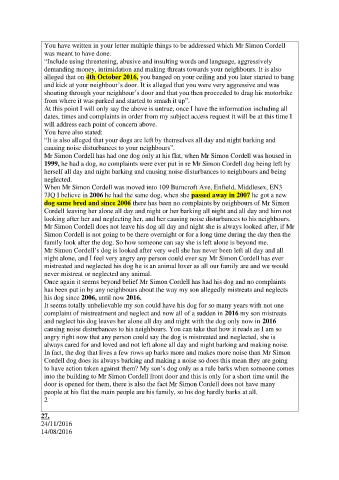 “It is also alleged that your dogs are left by themselves all day and night barking and