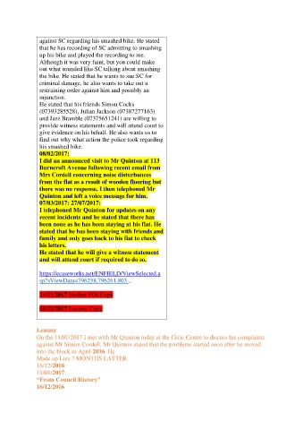 On the 11/01/2017 I met with Mr Quinton today at the Civic Centre to discuss his complaints