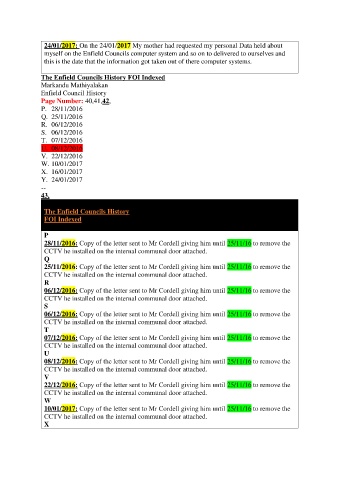 24/01/2017: On the 24/01/2017 My mother had requested my personal Data held about
