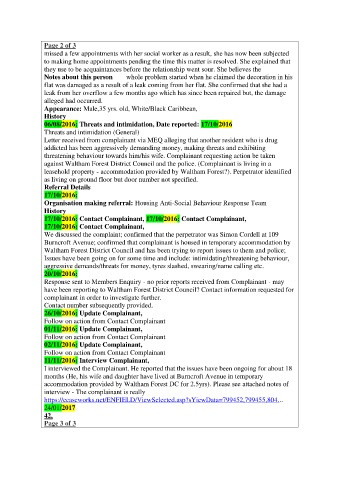 leasehold property - accommodation provided by Waltham Forest?). Perpetrator identified