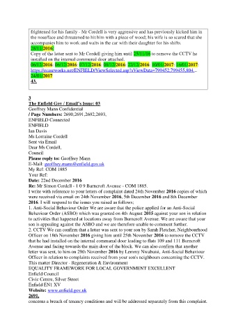 Copy of the letter sent to Mr Cordell giving him until 25/11/16 to remove the CCTV he