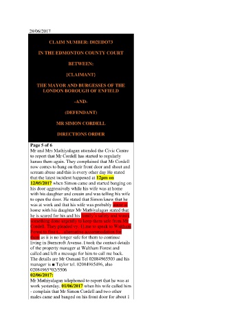 harass them again. They complained that Mr Cordell