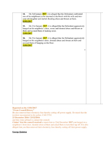 14. On 3rd January 2017, it is alleged that the Defendant confronted