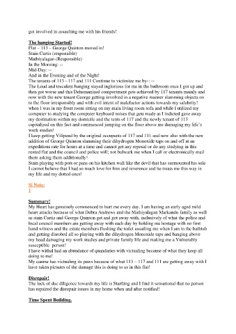 The tenants of 113 - 117 and 111 Continue to victimize me by-: --