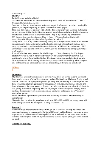 Stain knocked on my letter box and woke me up again this Morning, when he is leaving his