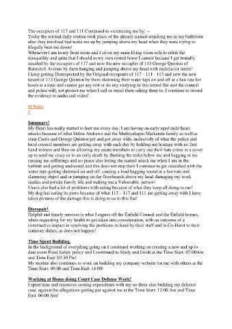 The occupiers of 117 and 111 Continued to victimizing me by: --