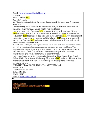 you on 22nd February 2017 and again you cancelled the meeting. I have enclosed all