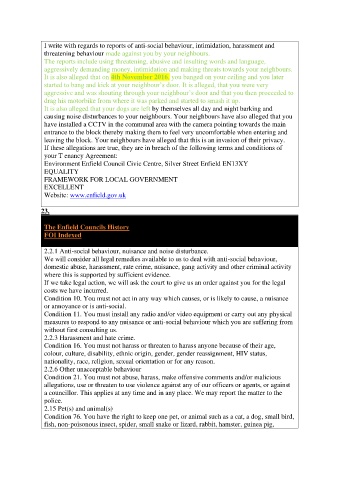 aggressive and was shouting through your neighbour’s door and that you then proceeded to