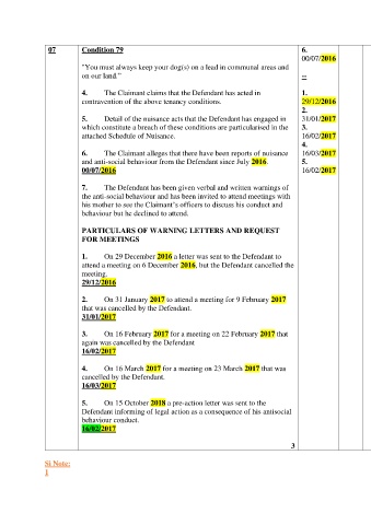 and anti-social behaviour from the Defendant since July 2016. 5.
